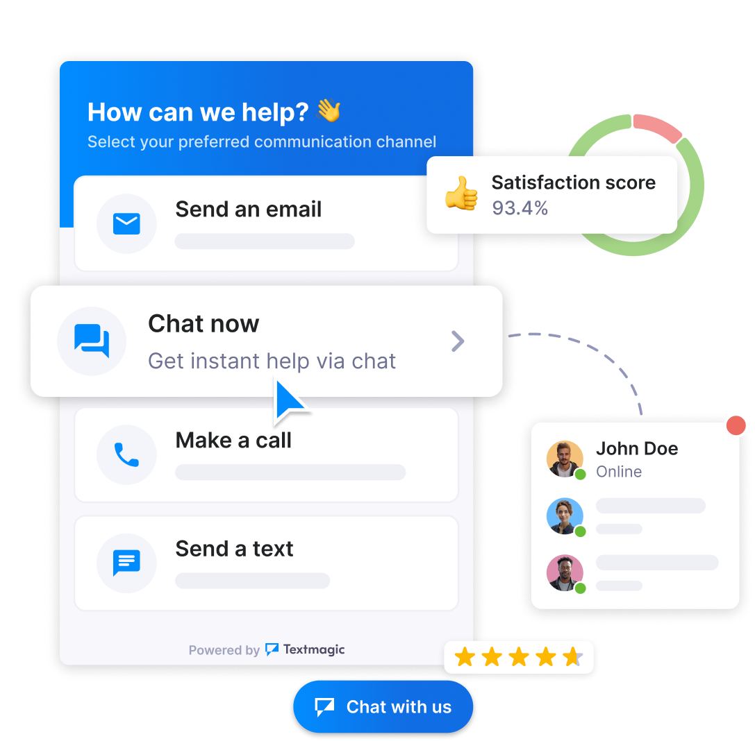 • Expand communication channels: The omnichannel widget lets your website visitors connect with you through various channels, including SMS, WhatsApp, email, calls, and live chat —whatever works best for them.